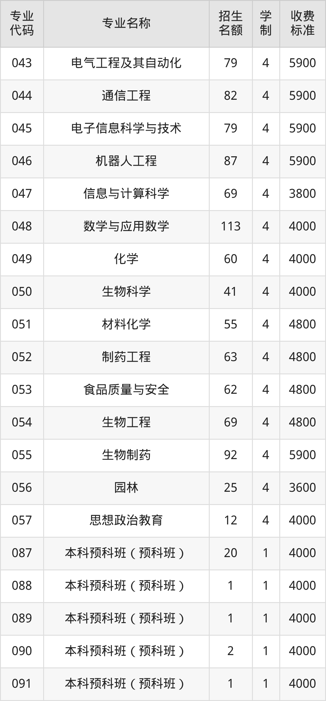 | 082 | 本科预科班(预科班) | 4 | 1 | 4000 |