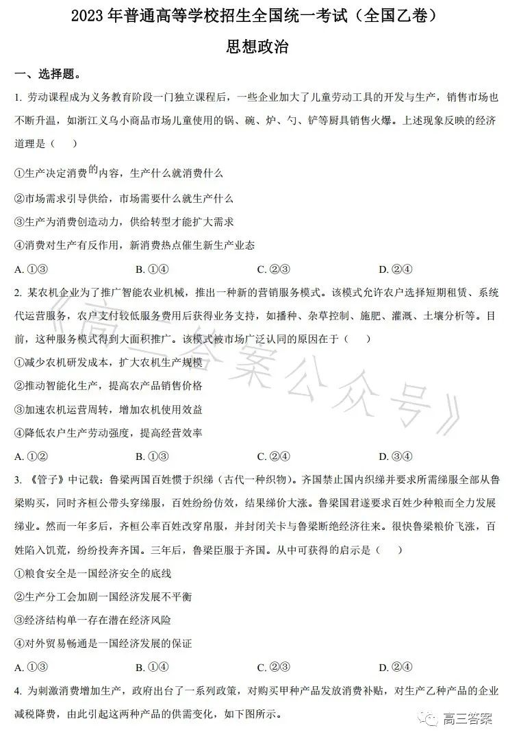 2023年吉林高考试卷真题及参考答案各科目汇总:https://www.gk100.com/read_29134829.htm(点击查看)