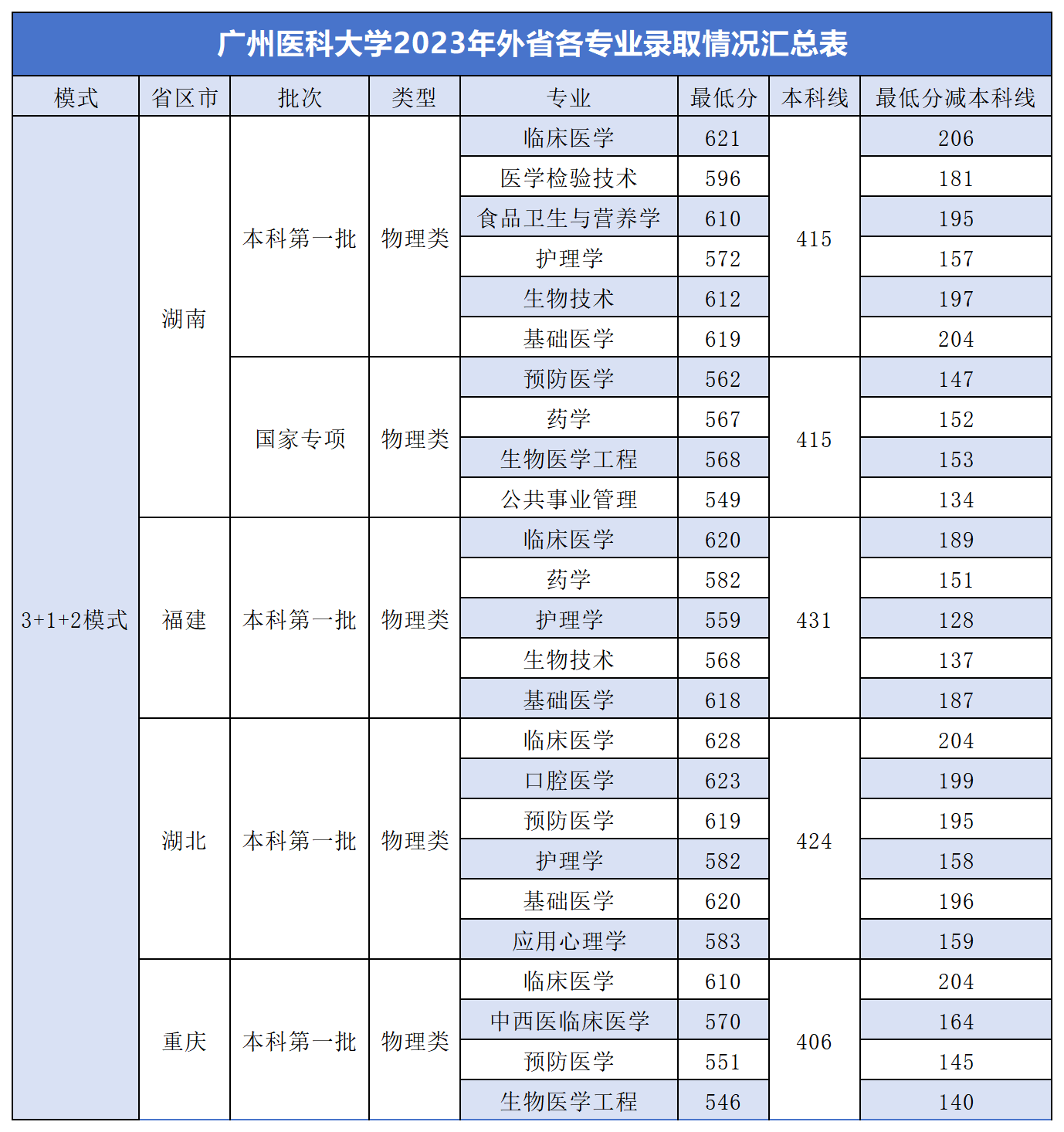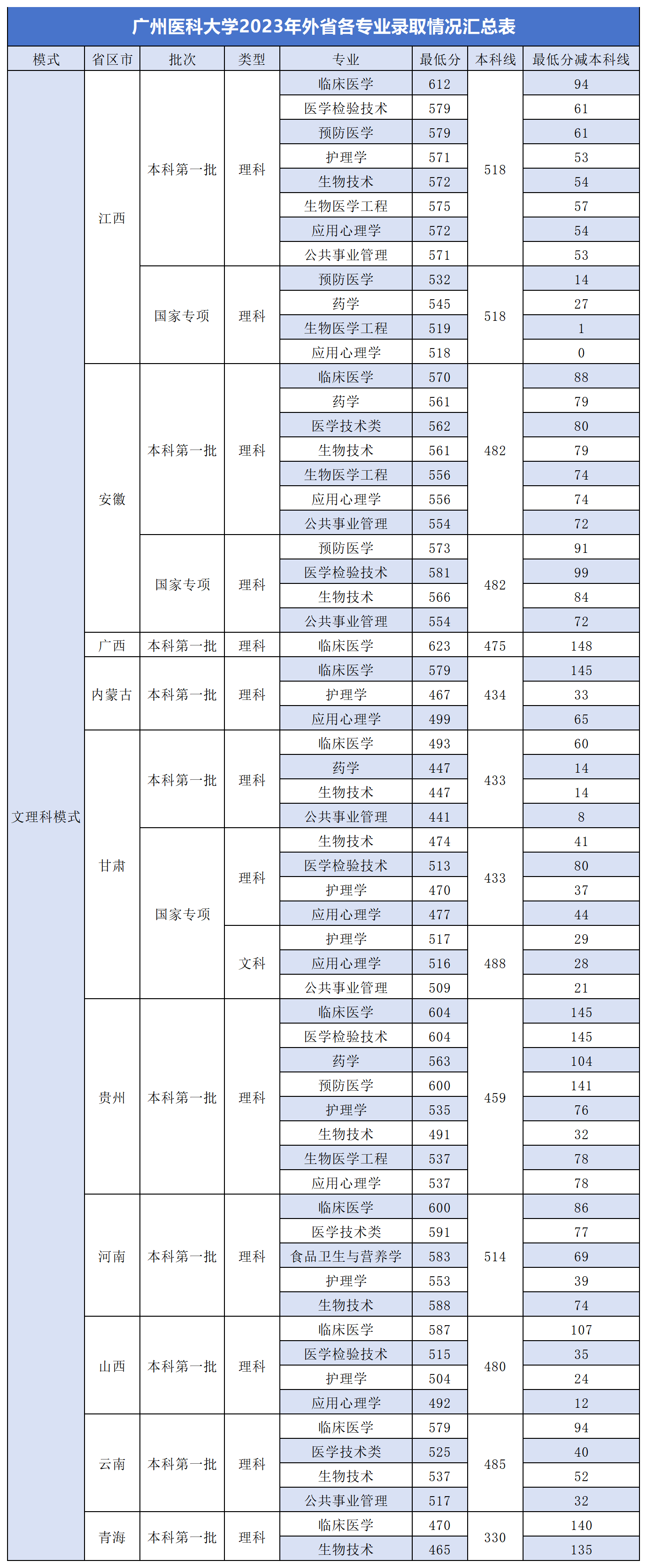 二、广州医科大学在省外录取分数线