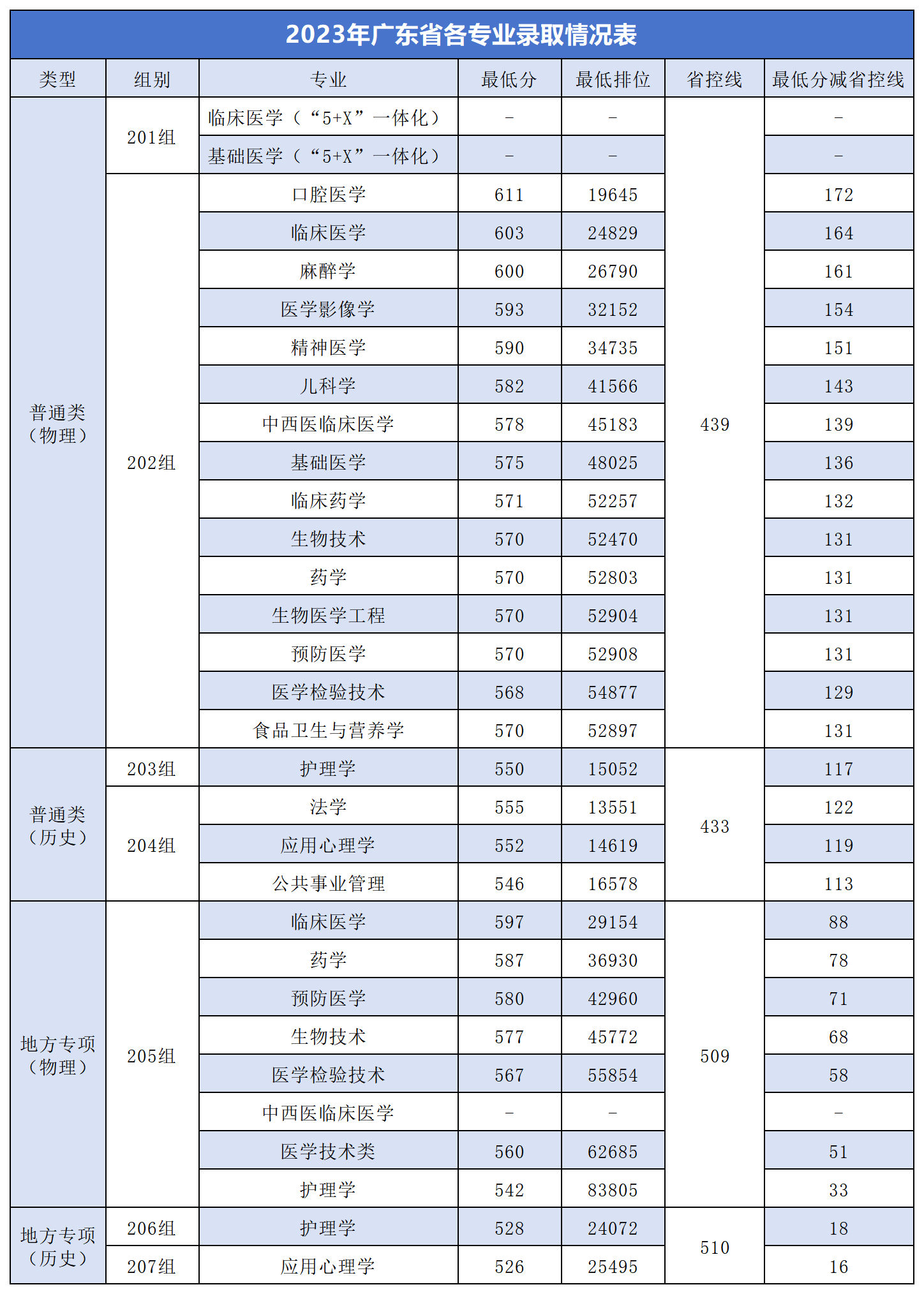 一、广州医科大学在广东省录取分数线