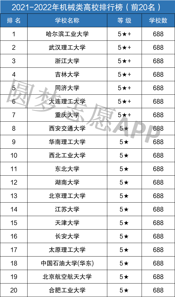 根据中国大学本科教育按专业类排名来看,以机械类为例,在2021年中国机械类高校排行榜中,哈尔滨工业大学位居第一,武汉理工大学和浙江大学分别是第二、第三名。
