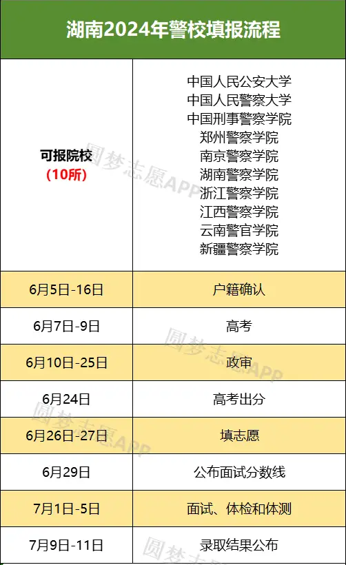 2025年湖南警校报考流程主要包括填报志愿(6月26日-27日)、政审(6月10日-25日)、体检面试(7月1日-5日)等。想要报考警校需要满足户籍、年龄16到22岁、未婚、符合公安院校体检标准等条件。完整流程及时间安排表如下。