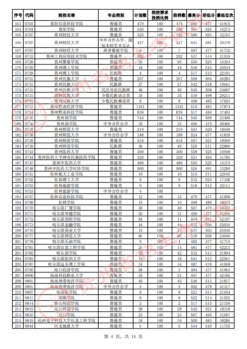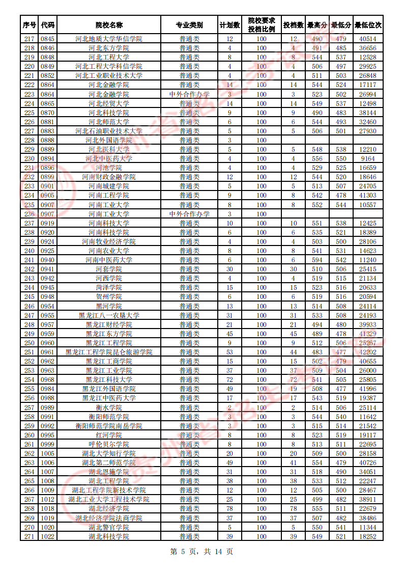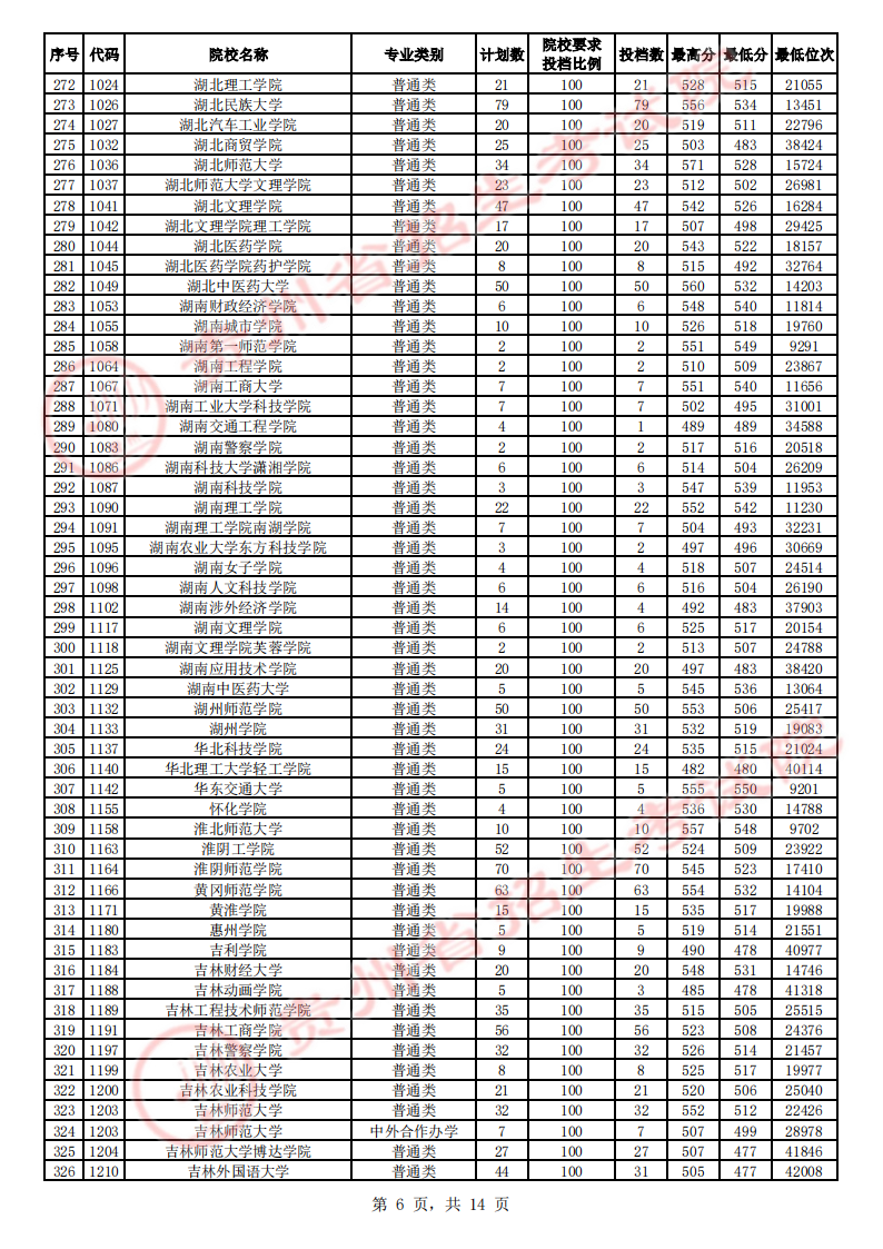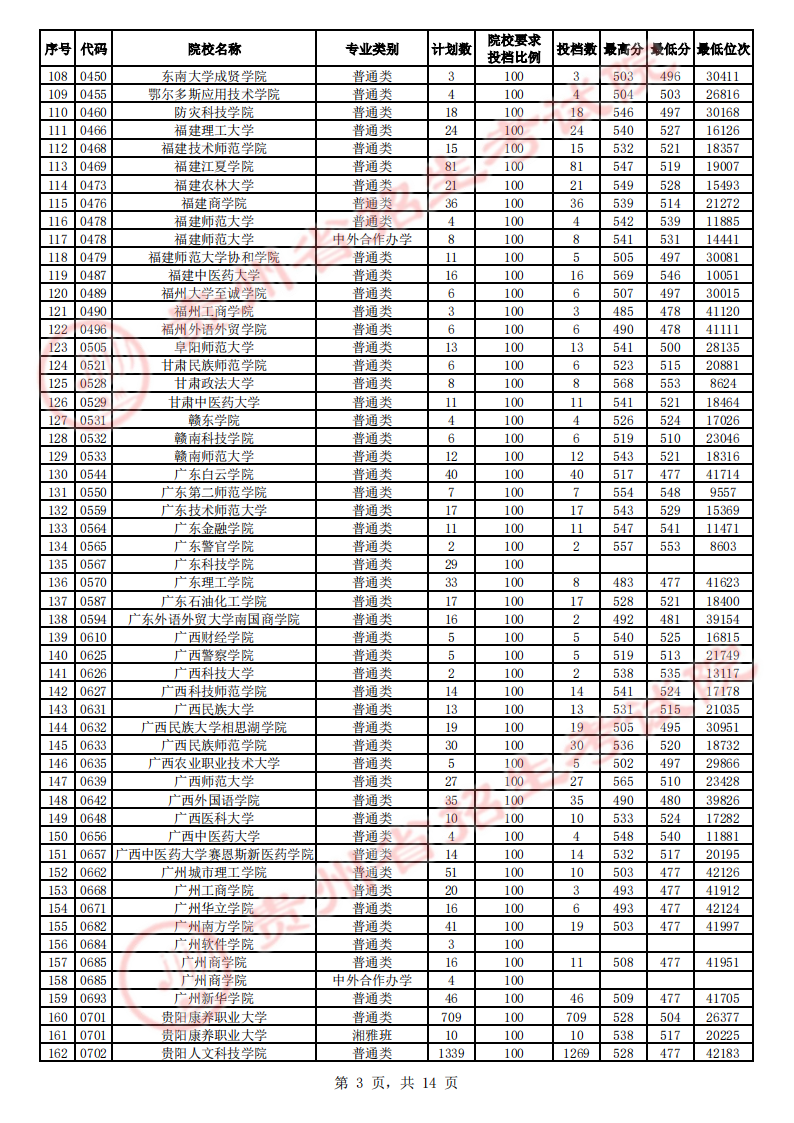 | 院校名称 | 专业类别 | 最高分 | 最低分 | 最低位次 |