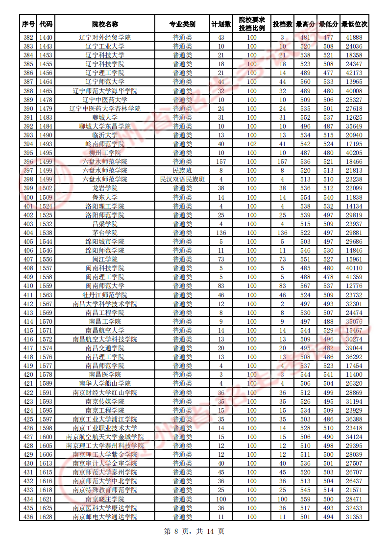 | 毫州学院 | 普通类 | 424 | 406 | 97551 |