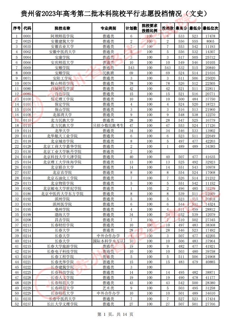 | 安顺学院 | 普通类 | 459 | 407 | 96411 |