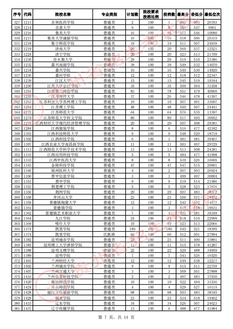 | 长春财经学院 | 普通类 | 400 | 371 | 134541 |