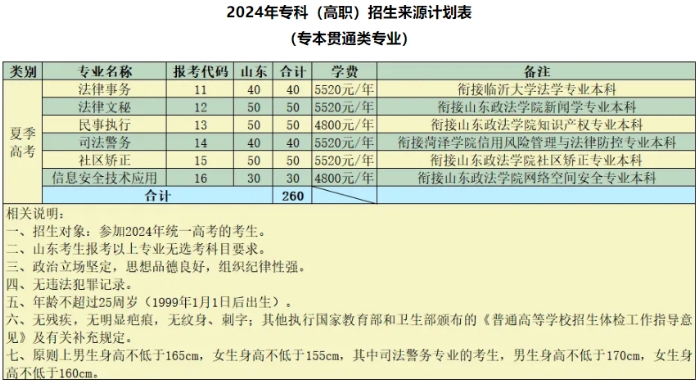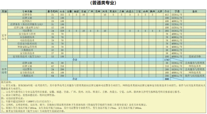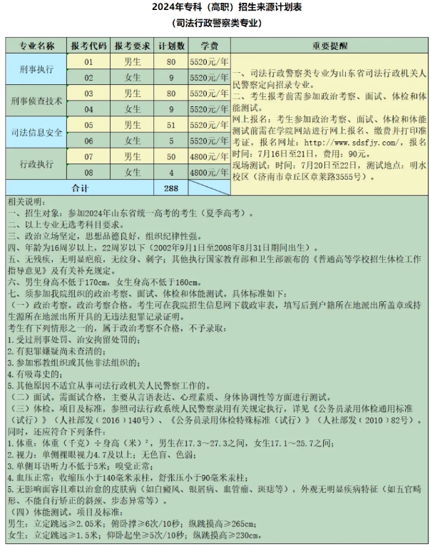 同时本文也整理出2024年山东司法警官职业学院的详细招生计划,供2025年考生参考。