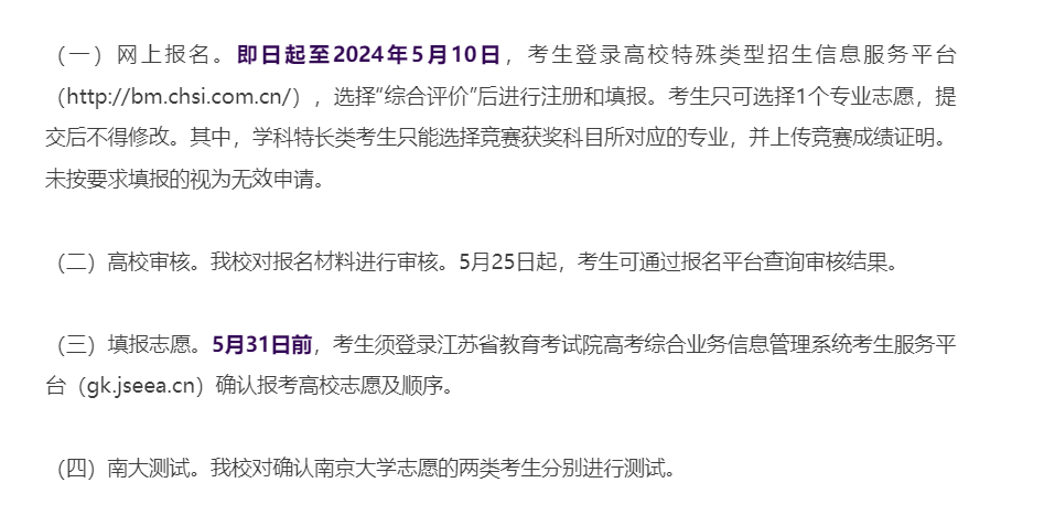 南京大学2024年综评招生仅面向江苏考生,主要信息如下: