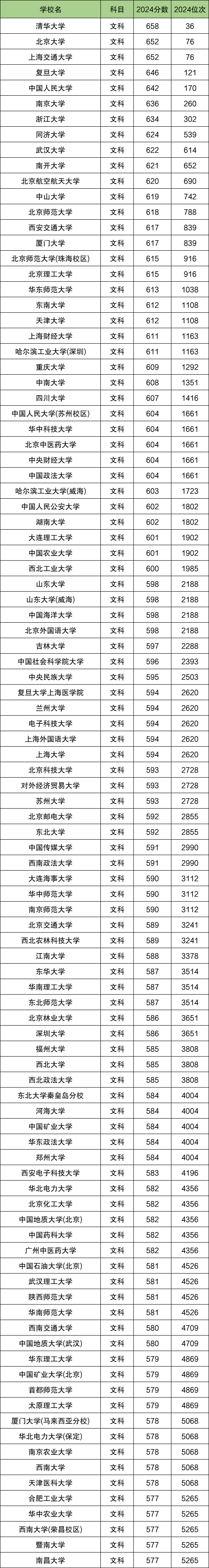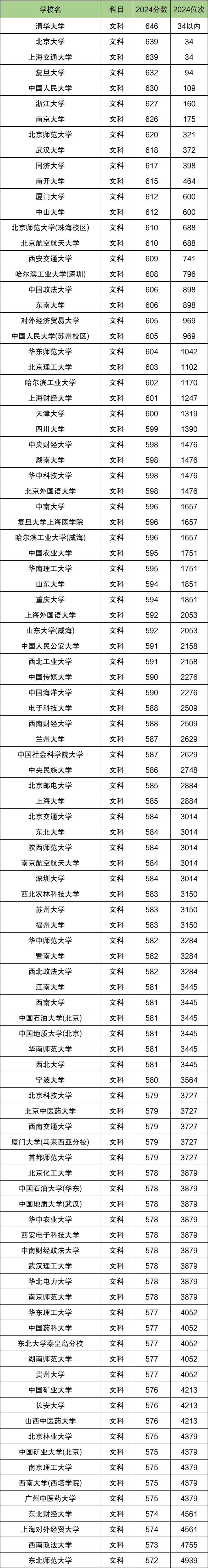 下表为全国一本文科大学中四川省分数排名前100的学校。