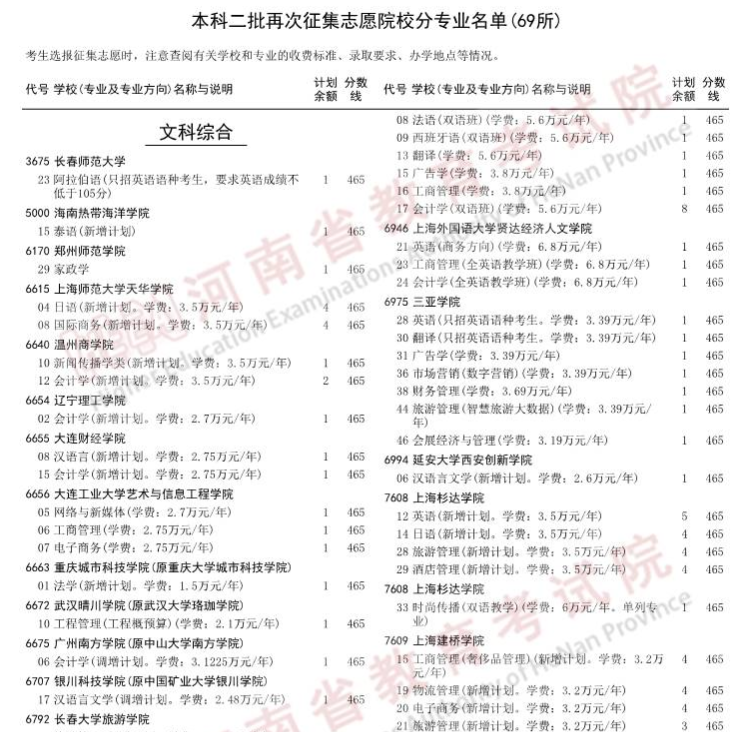 2025年普通类常规批第2次志愿剩余本科计划(填报时间:7月24日-26日每天9:00-18:00)
