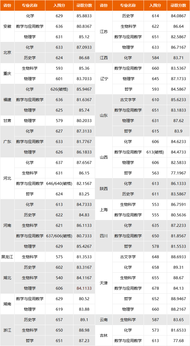 二、2023年强基各校录取分数
