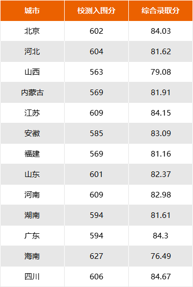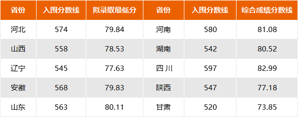 河北入围分数线为574分,录取分数线79.84分