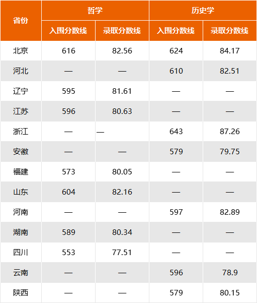 历史学专业在北京入围分为624分、录取分84.17分
