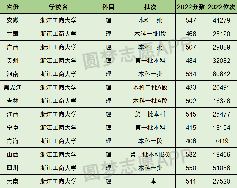 2、浙江工商大学在全国普通高考省份的【理科】招录数据,包含招生批次等信息: