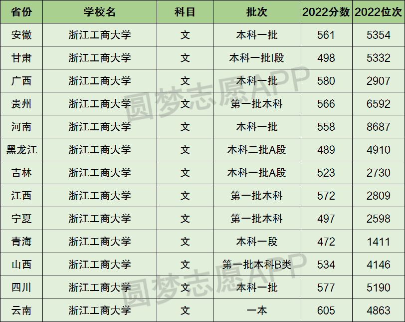1、浙江工商大学在全国普通高考省份的【文科】招录数据,包含招生批次等信息: