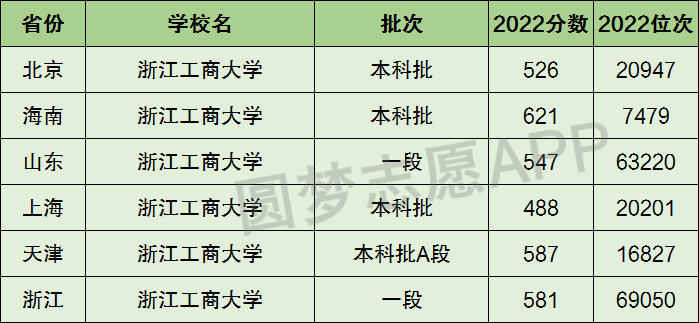 下面圆梦志愿将为大家展示浙江工商大学2022年在全国各省市的最低分数线和位次,大家可以在了解浙江工商大学在全国各省详细招生批次的同时,也顺便看看浙江工商大学的招生录取分数线是多少!