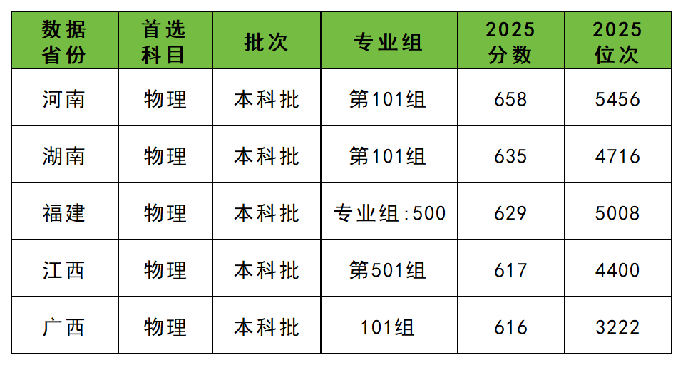 2025年本科招生50人。其中福建17人、河南9人、江西9人、湖南8人、广西7人。