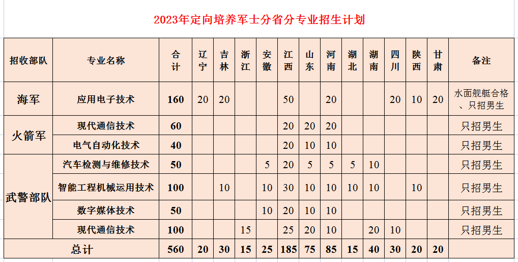 (四)江西省录取批次及报考代码:专科提前批录取,火箭军、武警报考代码为:7920,海军报考代码为:7959.