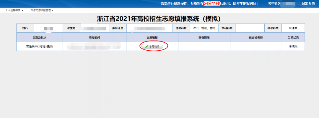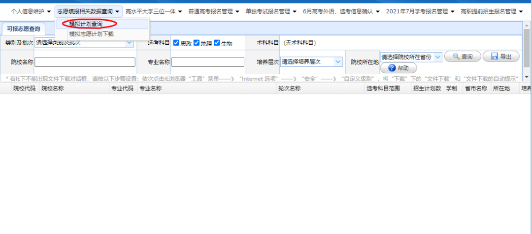 退出目前模拟计划查询系统,选择登陆“浙江省高校招生志愿填报模拟系统”。