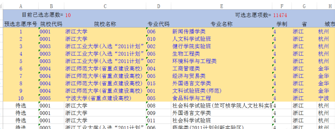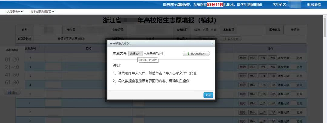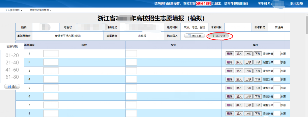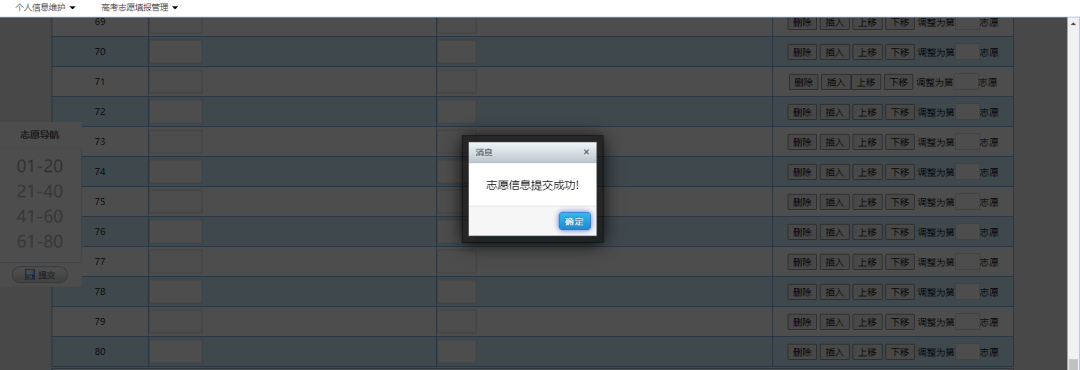 就可以一次性把保存好的80个志愿,通过“志愿导入表”一次性导入志愿填报系统了。