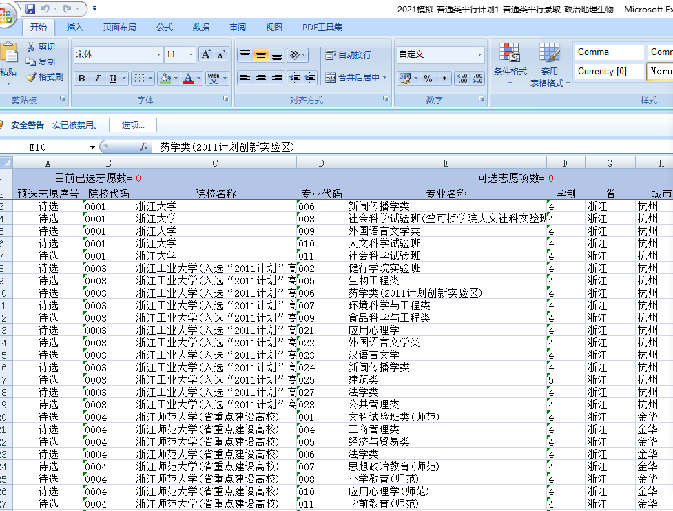 3、直接在下载的招生计划中,添加80个志愿的数据标识。