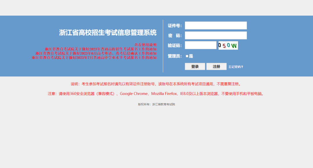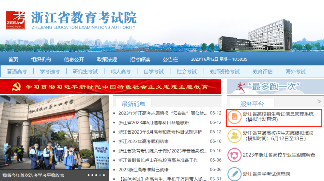 进入浙江省教育考试院网站,选择浙江省高校招生考试信息管理系统(模拟计划查询)。