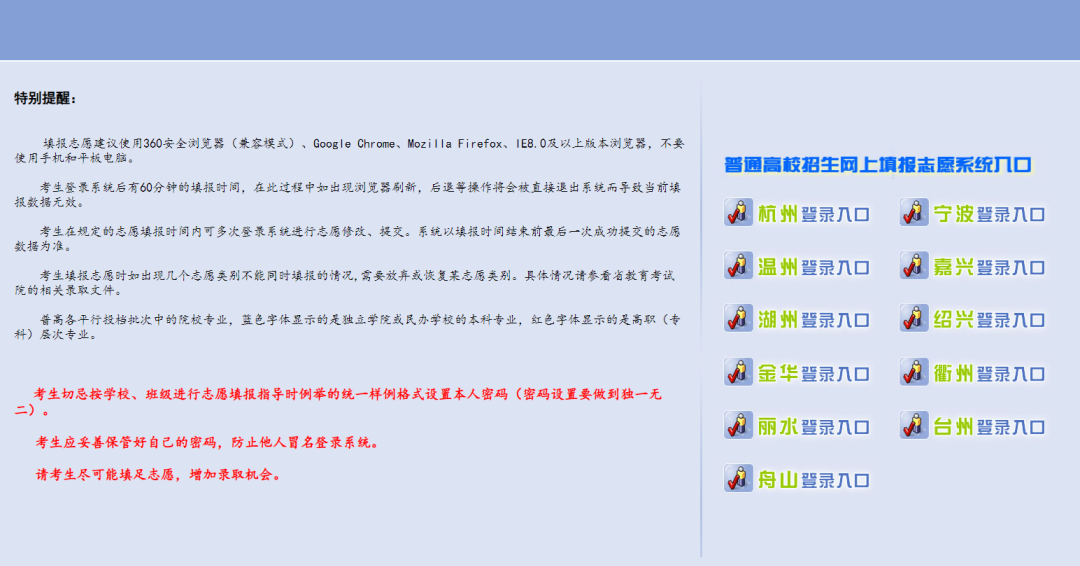 2024浙江高考志愿填报模拟演练官网入口在浙江省教育考试院官网,具体网址如下: