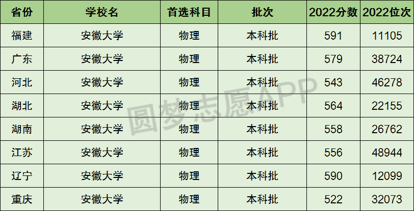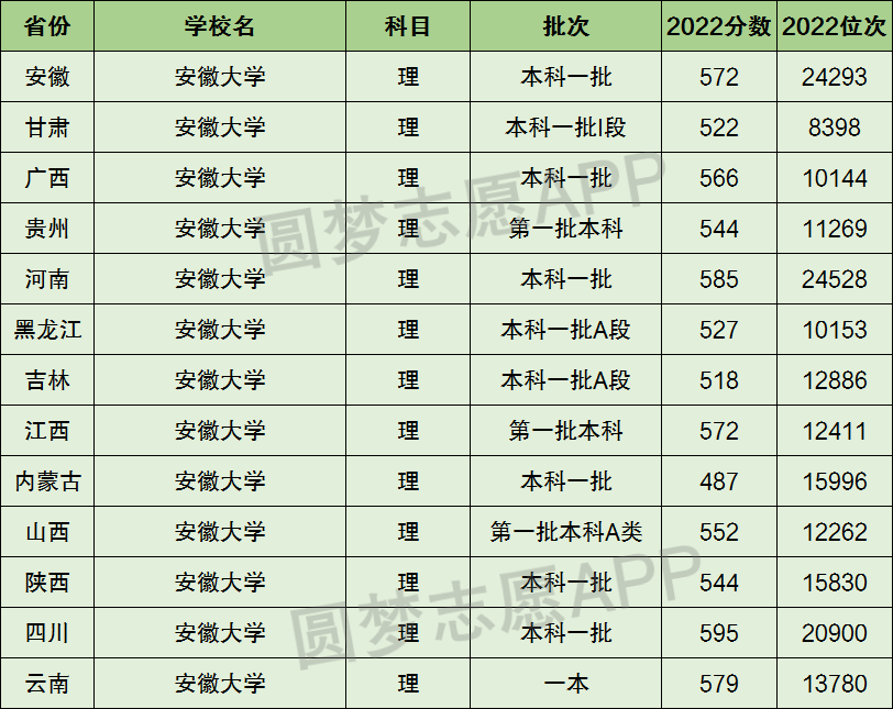 2、安徽大学在全国普通高考省份的【理科】招录数据,包含招生批次等信息: