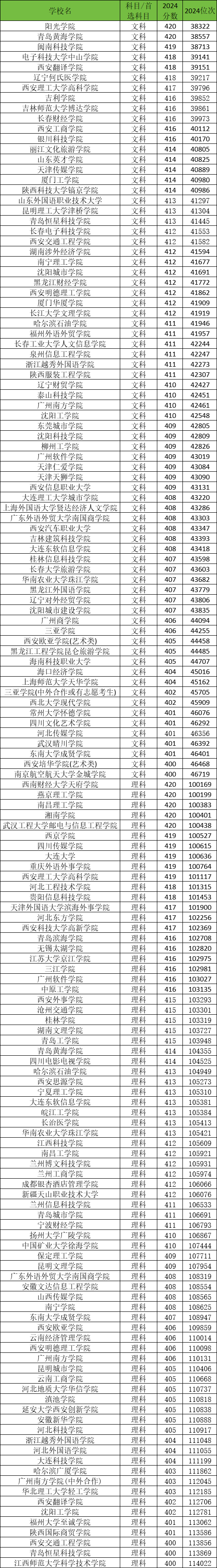 2024年在陕西招生的所有二本大学中,400-420分左右的院校有下列这些: