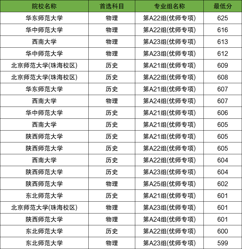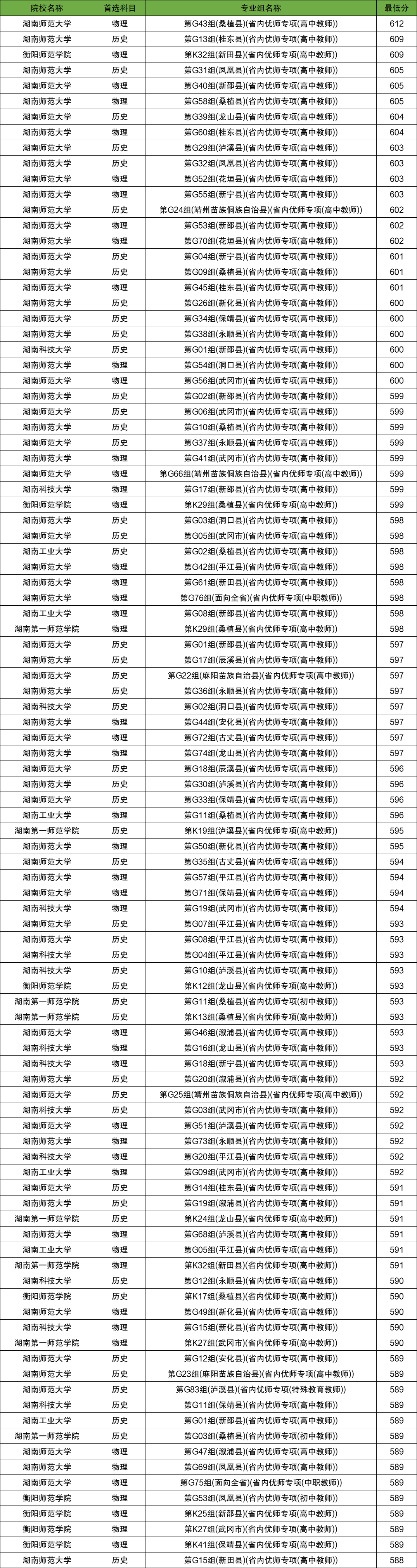注:湖南地方(省属)优师计划的分数线比较复杂,同一院校同一专业组面向不同的县(区)都有不同的分数,本文篇幅有限,所以本文就整理出各院校各优师计划录取分数线前100名,供大家参考。