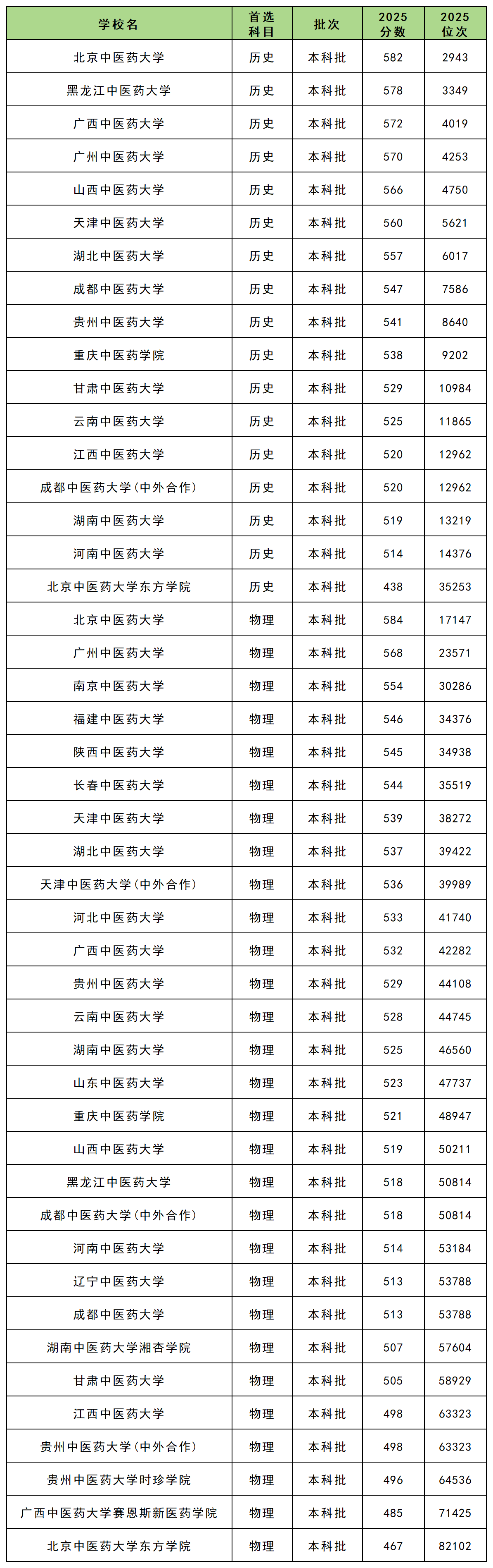 以重庆为例,为大家展示了2025年全国所有中医药大学录取分数线,供参考。