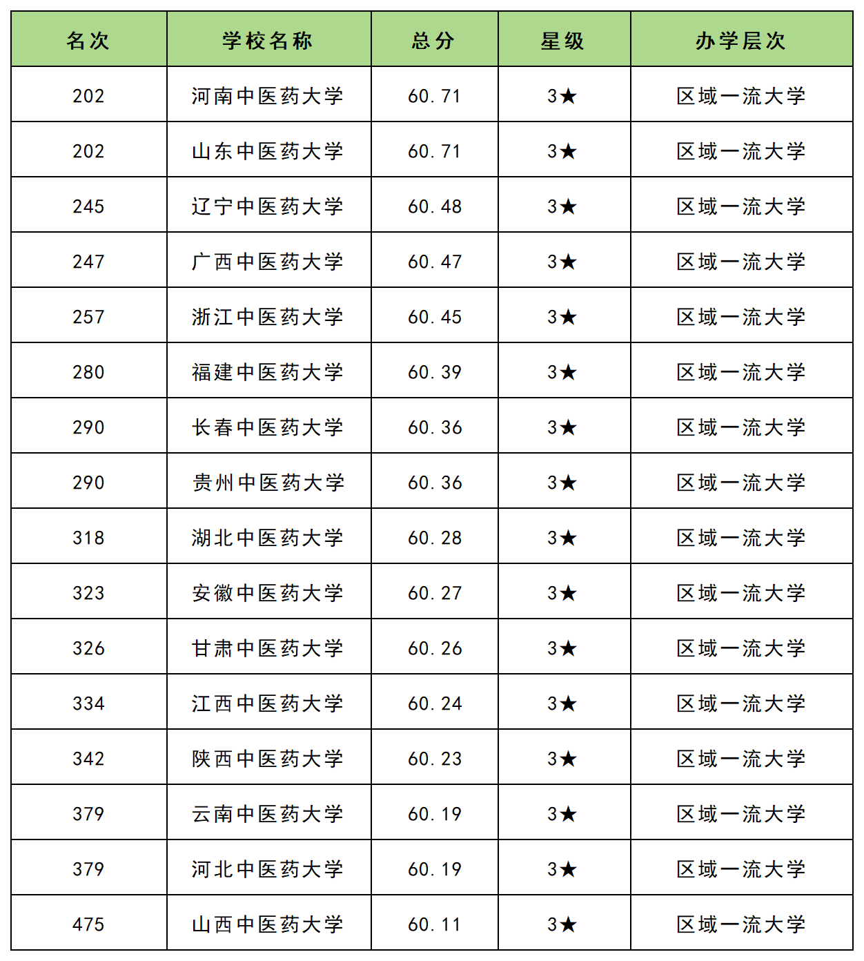 上文整理的是软科排名,如果按照校友会划分的办学层次来看的话,中医药大学可以分为五个档次。