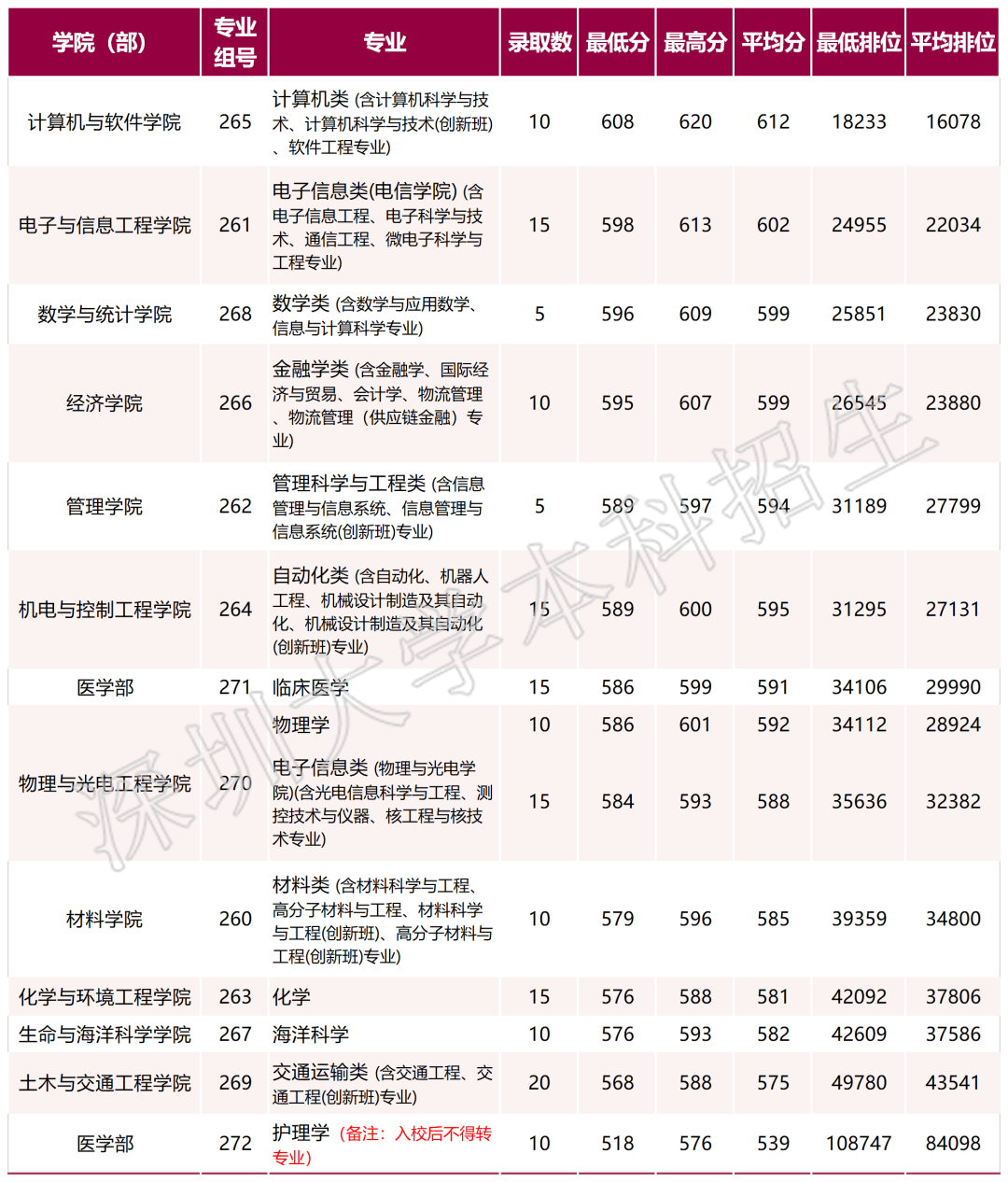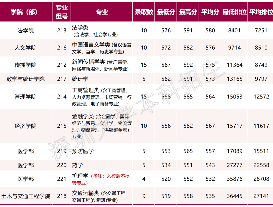深圳大学2021年广东省普通类录取情况(历史)