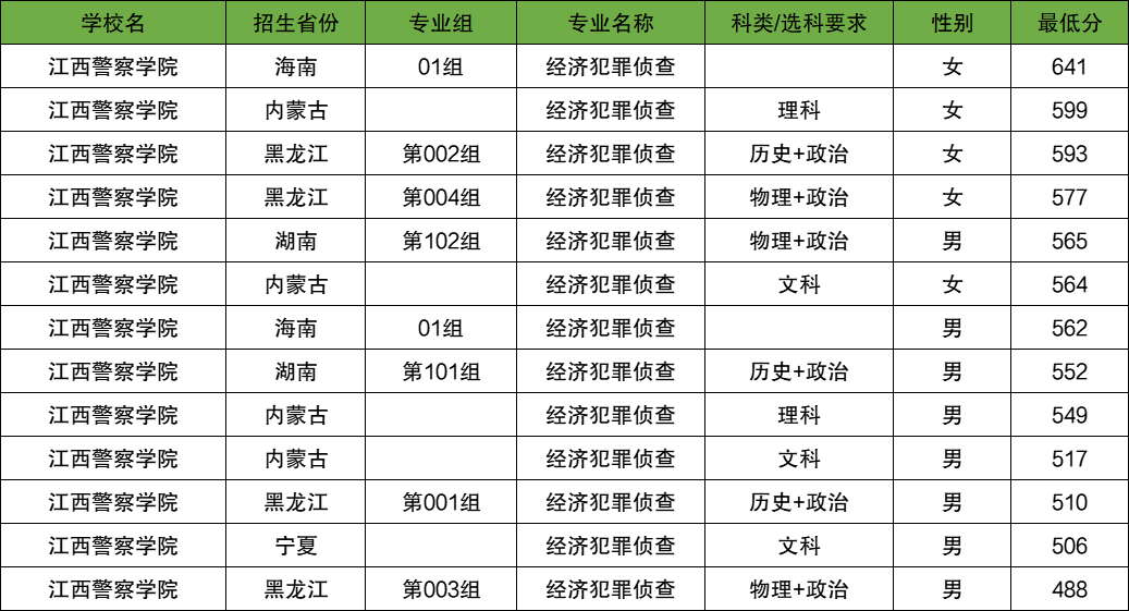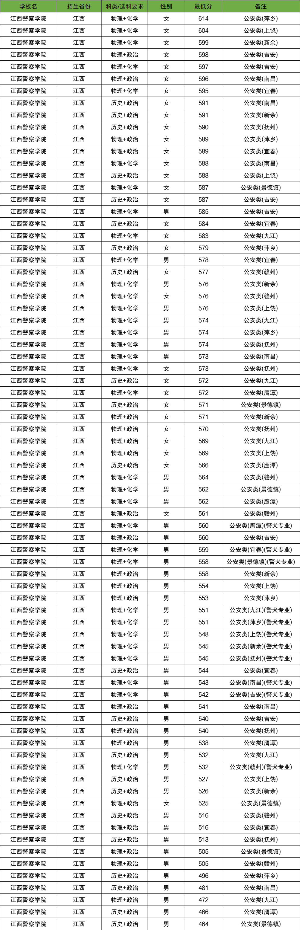 2024年江西警察学院提前批公安类专业在省内招录情况中,历史类男生最低能以高考464分的成绩被江西警察学院录取,历史类女生报考江西警察学院的公安类专业最低需要566分。