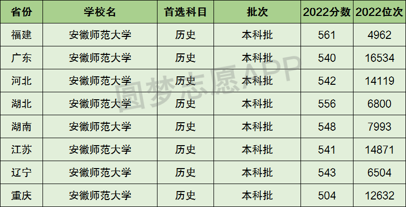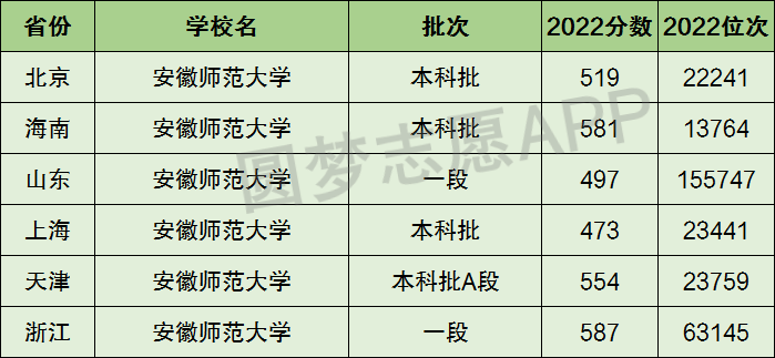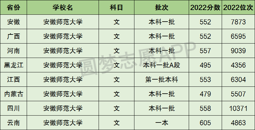 1、安徽师范大学在全国普通高考省份的【文科】招录数据,包含招生批次等信息: