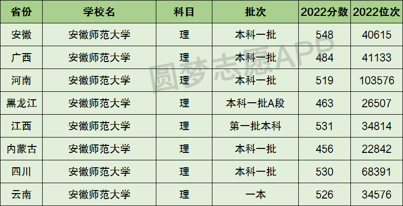 2、安徽师范大学在全国普通高考省份的【理科】招录数据,包含招生批次等信息: