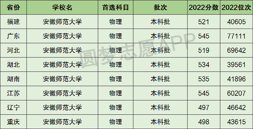 5、安徽师范大学在3+1+2新高考省份【首选物理】的招录数据,招生批次为本科批: