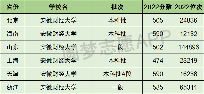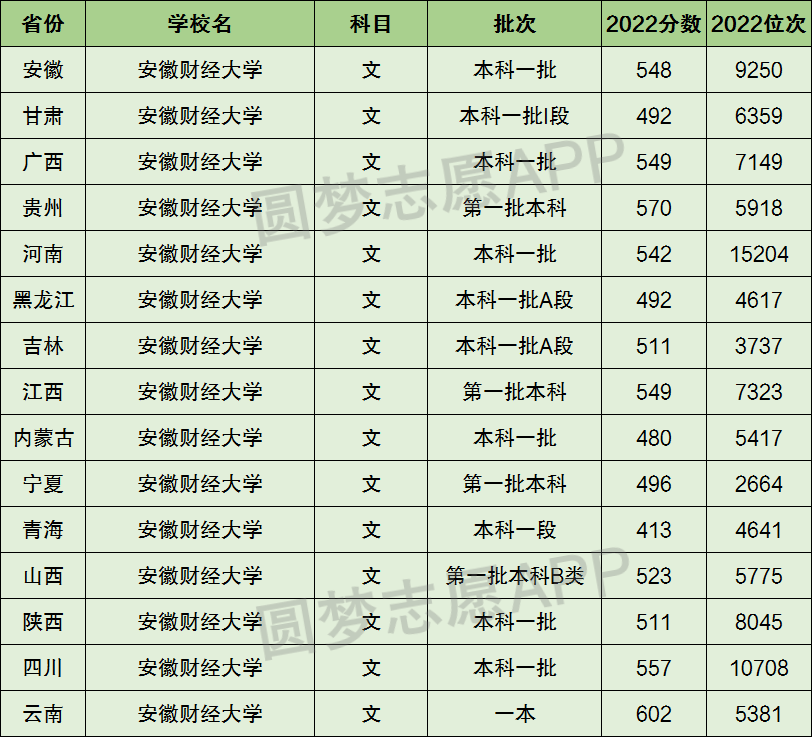 1、安徽财经大学在全国普通高考省份的【文科】招录数据,包含招生批次等信息:
