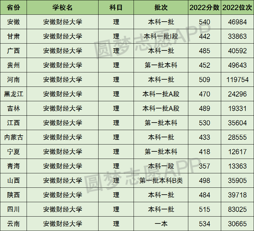 2、安徽财经大学在全国普通高考省份的【理科】招录数据,包含招生批次等信息: