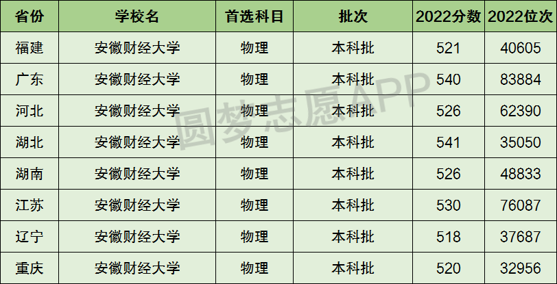 5、安徽财经大学在3+1+2新高考省份【首选物理】的招录数据,招生批次为本科批: