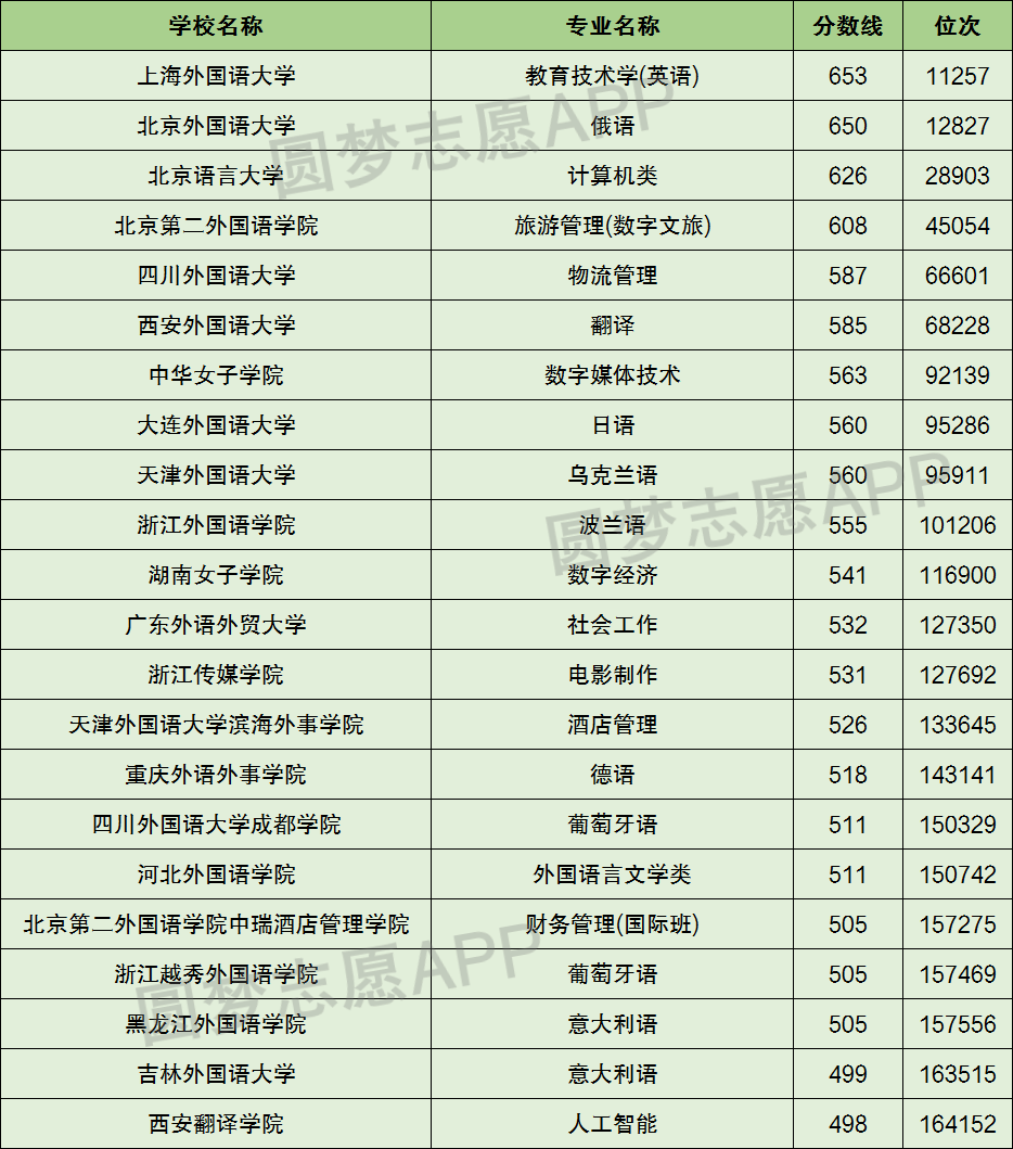 因此各位同学想要考上这些语言大学的专业,就需要更高的分数线。各位前往各应用商店下载圆梦志愿APP,即可查看全国大学各专业分数。