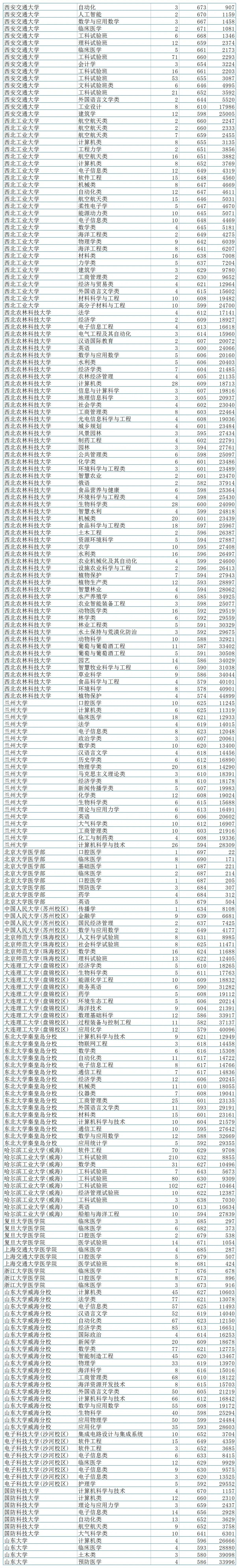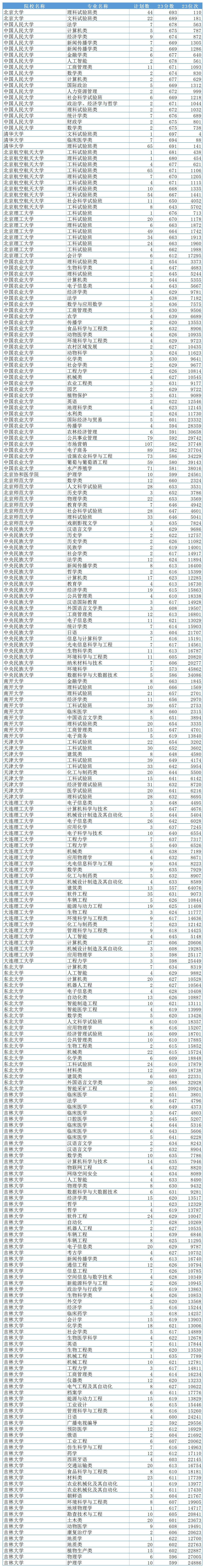 2023年清华大学在山东共有3个专业进行招生,分别是文科试验班、理科试验班和临床医学类,录取分数线分别为697分、691分、694分;对应录取位次为4-141名;