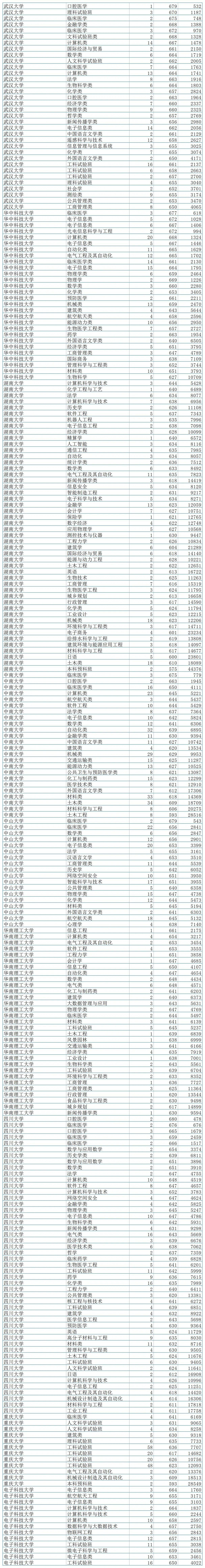 二、985大学在山东录取分数线一览表