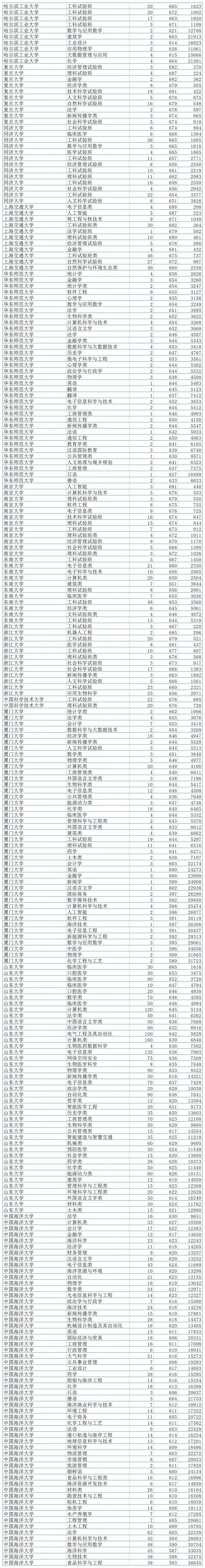 2023年中国海洋大学在山东省内招生专业同样较多,录取分数线较低的专业有:食品科学与工程583分、生物技术588分、海洋科学587分、数学与应用数学590分、计算机科学与技术594分;此外中国海洋大学录取分数线最高的专业是发现,最低投档分数630分,对应录取位次9651名;
