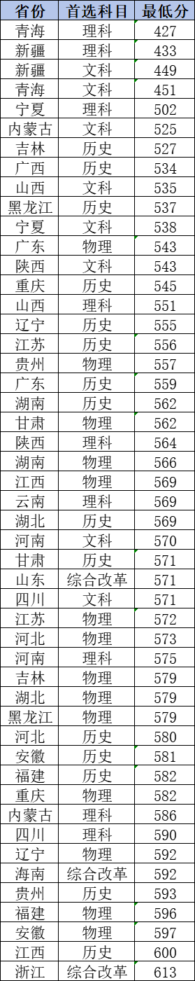 2024年西北大学高校专项计划各省录取最低分一览表: