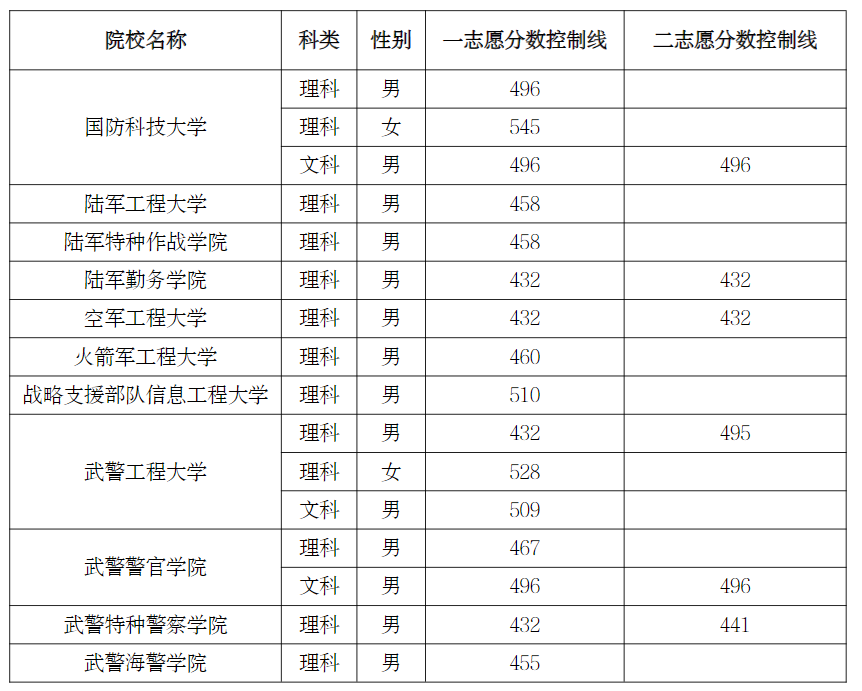 二、宁夏提前批军校分数线