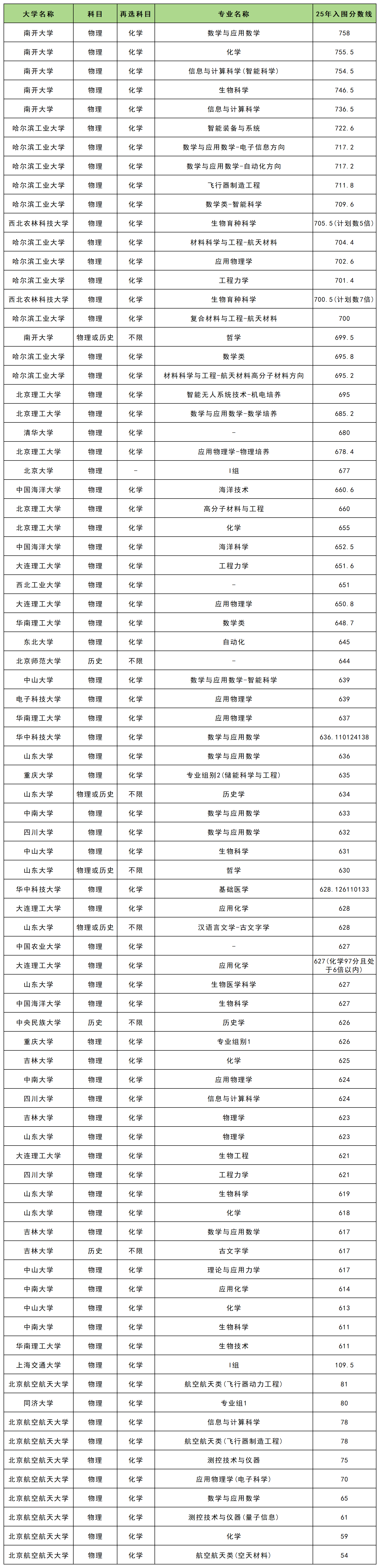 各院校强基计划在河北2025入围分数线: