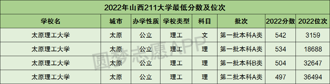 根据圆梦志愿APP提供的数据,小编为大家整理出了山西省内的211大学在山西省文理科的最低分数线及近一年的录取位次。