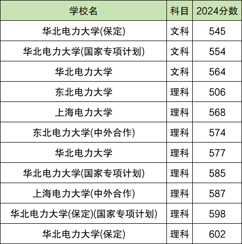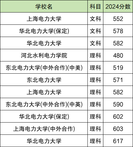 2024全国电力大学在文科录取分数线552分-582分。最高录取分数线对应院校:华北电力大学;最低录取分数线对应院校:上海电力大学。