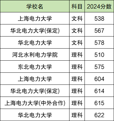 2024全国电力大学在文科录取分数线538分-578分。最高录取分数线对应院校:华北电力大学;最低录取分数线对应院校:上海电力大学。